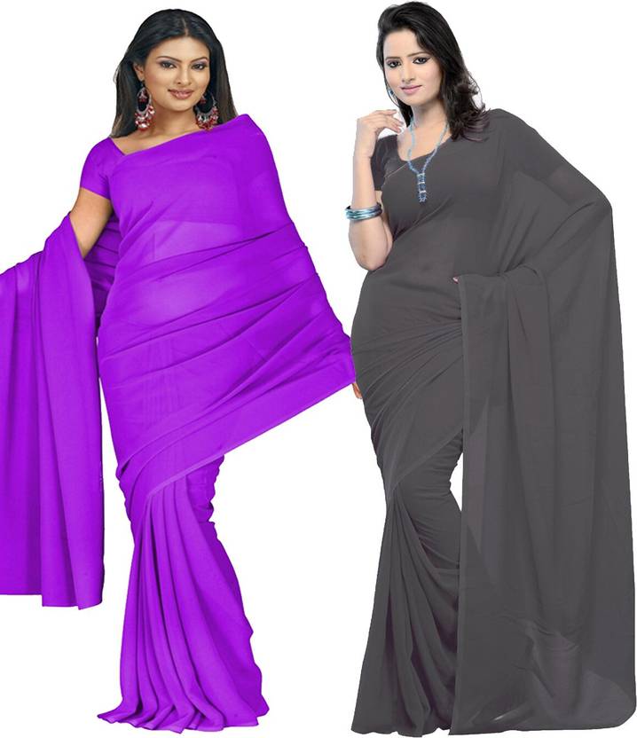 FANCYNINE Self Design Daily Wear Georgette Saree (Pack of 2, Purple, Black)
