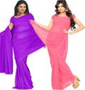 FANCYNINE Dyed Medium Purlpe and Medium Violet Saree With Unstitched Blouse & Saree Fabric - Georgette, Blouse - Georgette, with Length of Saree - 5.5,Blouse - 0.8