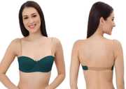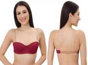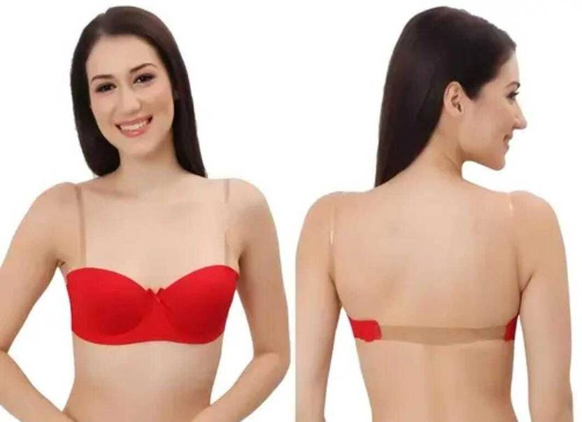Women's Transparent Straps Backless Lightly Padded Under-wired Push-Up Bra Strapless Bra Women's Girls Bra