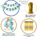 FANEX Solid Blue Happy Birthday Decoration Combo - 104Pcs Set (1 Birthday Banner, 100 Balloons,2 Foil Curtains,1 Foil Number Balloon) For Prince Boy Birthday Party Decoration ,Happy Birthday Balloons for Party Decoration , Baby 1st birthday Balloon (Blue, White, Gold, Pack of 104)