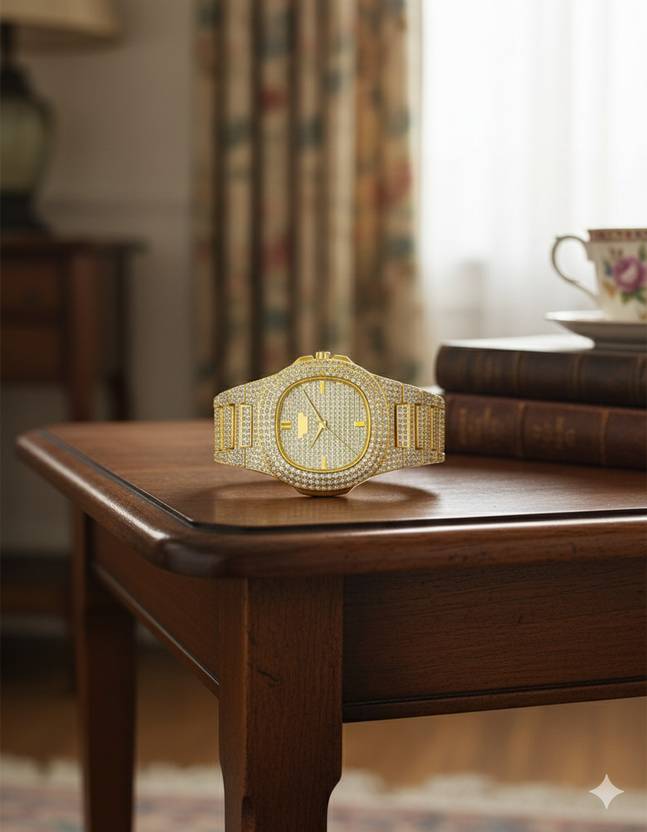 Fanish fashion Aurora Royale Men's Analog Luxury Watch (Gold, Full Crystal) Luxury watches Analog Watch - For Men