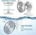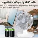 FANOX Rechargeable 4000mAh Desk Fan, Portable USB-Powered Table Fan 3 Blade Led light Cooling Mini Fan for Indoor, Outdoor USB Fan (White, Silver)