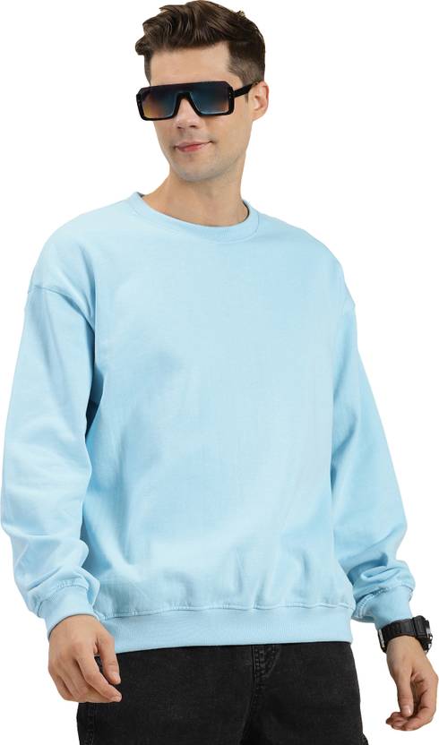Men's Cotton Round Neck Casual Ice Blue Oversized Sweatshirt