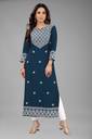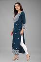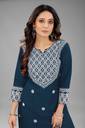Owing to the gorgeous embroidered touch added throughout the front of the kurta, it can be worn for a stand out fashion appeal. This thread based embroidery has been skillfully stitched into the kurta fabric with a finesse that cannot go amiss. Made in a vibrant colour, the additional texture gives the clothing a fine appeal. The three fourth sleeves in the kurta frame make it a modest clothing option that can be worn by women of all ages whether middle aged, older, or younger.
