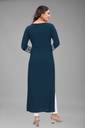 This is an ethnic clothing option for women that has been designed in a kurta form. The traditional clothing is tailored with a meticulous detail with its fine straight pattern and a calf lentgh look. The straight pattern is enhaced with the regular side cuts that are added in this kurta clothing. The side cuts are added from the hips and below on either side. With the boat neck pattern, it has lovely attire that can be worn with matching jewelley options for a resplendent look each time.