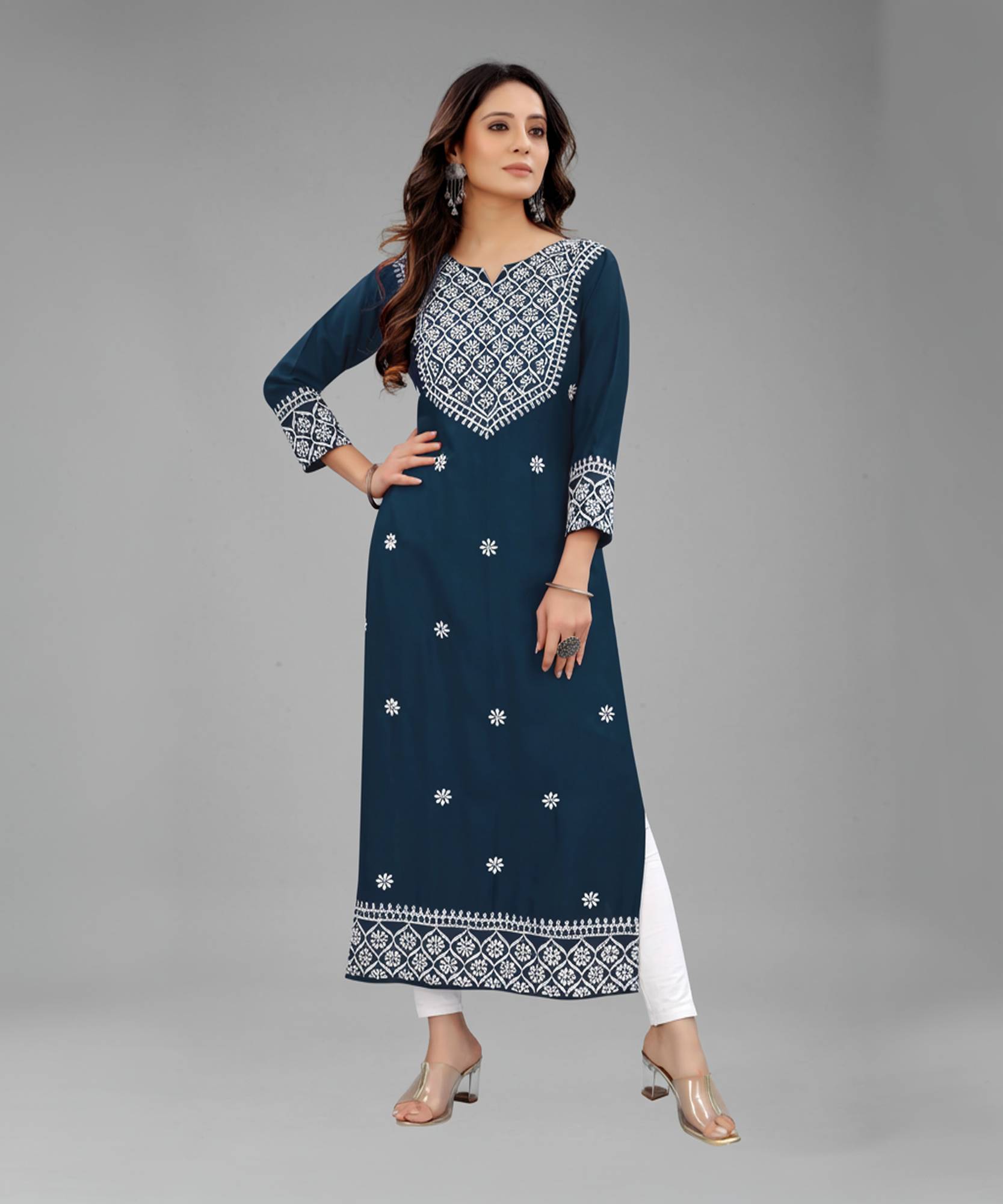 Whether you have to attend an office meeting, visit a family member, watch a movie at the cinemas, or hang out at the mall, you can wear this kurta at any casual event. You can match the kurta with any kind of bottom wear option like a pair of palazzo pants, leggings, salwars, etc. With a jewellery option that complements the elegant kurta form, you can be dressed for an impressive look wherever you go.