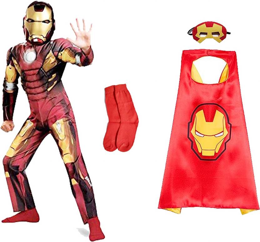 Introducing the ultimate Ironman Costume for kids, complete with a mask, backshell, and socks! This incredible ensemble will transform your little one into their favorite Marvel superhero, Ironman, allowing them to embark on thrilling adventures and save the day.
