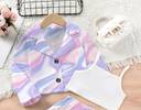 Introducing our luxurious 3-piece clothing set. Embrace the versatile elegance of the jacket, perfect for layering with any outfit, and indulge in the timeless charm of the white crop top, designed for effortless style. Elevate your comfort and style with this premium set, seamlessly blending coziness with a touch of refined sophistication, making it a must-have addition to your wardrobe.