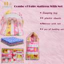 Fareto Cotton Baby Bed Sized Bedding Set (Pink, 1 BEG, 4 SHEETS, 1 MATTRESS WITH NET, 4 BEDDING SET)