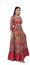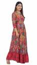 🌺 Stylish Maxi Dress: Full-length red gown with floral & peacock print.