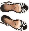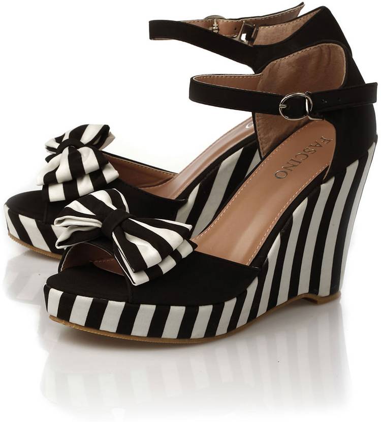 Grab these chic pair of wedges featuring a striped print on the wedge heel and the bow applique on the forefoot strap. The wedge also features an ankle strap with a hook fastening. The inner foot bed features the brand logo at the heel.