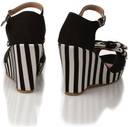fascino Women Striped Bow Wedges Multi Wedges Sandal (Black, White , 39 Euro)