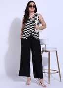 Introducing our sleek Black Solid Waistcoat and Ankle-Length Trouser Set, designed for a polished and modern look. The waistcoat features a back waist tie-up for a customizable, tailored fit. Paired with ankle-length trousers, this set offers both sophistication and comfort. The trousers come with convenient side pockets and semi-elasticated waist for added ease and flexibility. Ideal for formal and semi-formal occasions, this ensemble combines contemporary design with practical elements, making it a versatile addition to your wardrobe.