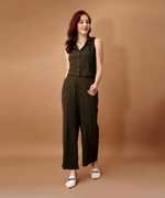 Introducing our Solid Texture Olive Cord Set, a chic and versatile addition to your wardrobe. This set features a stylish lapel collar crop shirt, offering a contemporary twist on a classic design. It is paired with ankle-length trousers that include both side invisible pockets for practicality and a back waist elastic for added comfort. The rich olive color adds a touch of sophistication, making this ensemble perfect for both casual and semi-formal occasions.