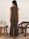 Enhance your wardrobe with this brown textured fabric waistcoat cord set, featuring a stylish waistcoat with a front waist cut for a modern and tailored look. The set includes straight-leg pants designed with a back elastic waistband for a comfortable, adjustable fit, and both side pockets are cleverly hidden for a sleek appearance. The rich texture of the fabric adds depth and sophistication, making this cord set a versatile choice for both formal and smart-casual occasions. Combining contemporary design with classic style, it’s perfect for a polished and refined outfit