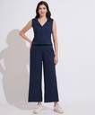 This Amazing Style Solid Blue Colored Collar Neckline, With Sleeveless Top Waist Pant Coord Set By Fashfun. This Coord Set Will Be Good For Outing . Create A Casual Party Look By Pairing This Dress With Heels Or Flats & Clutch.
