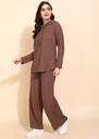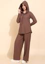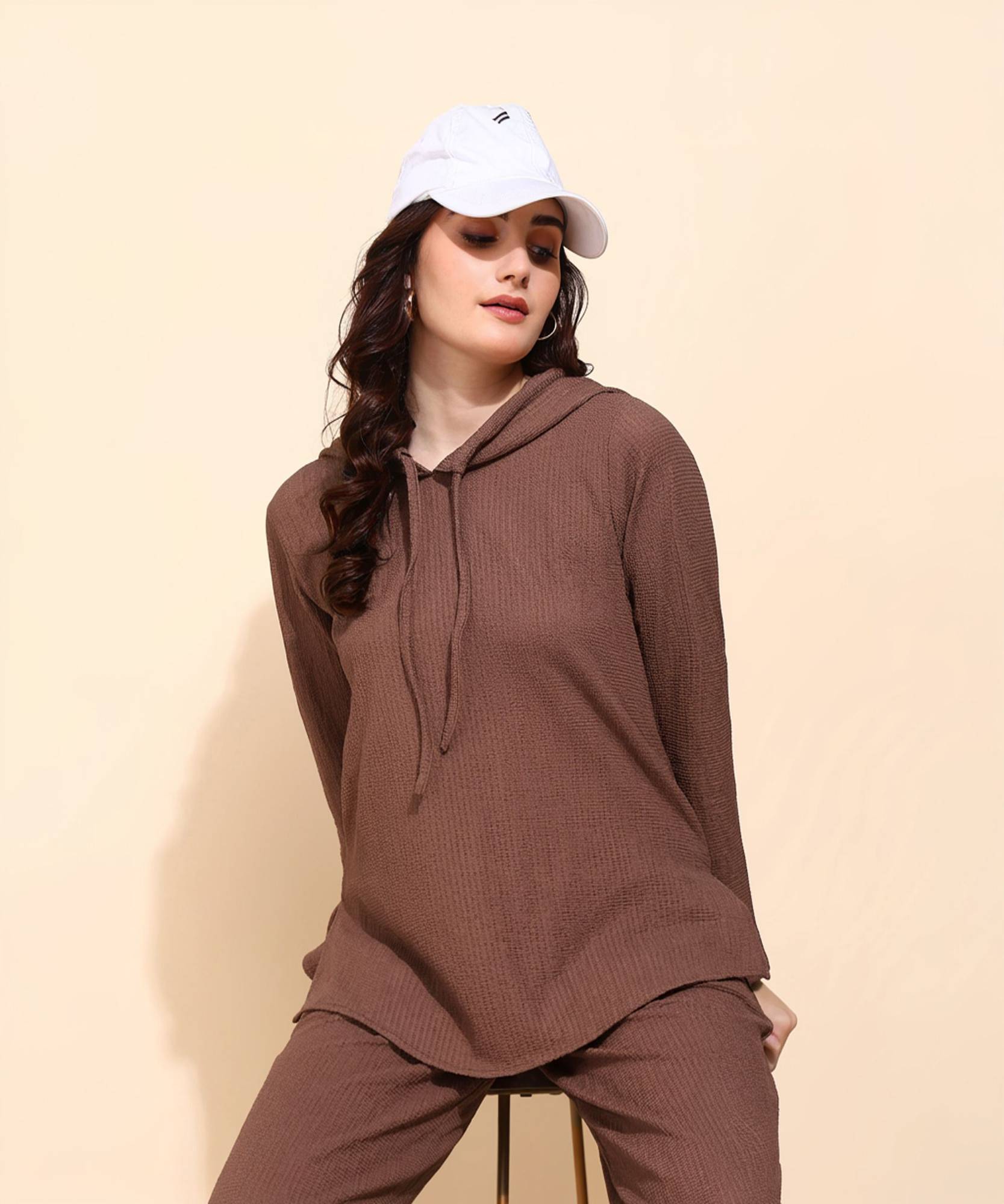 Fashfun Women's Rust Brown Texture Hooded Neck Co-ord Set