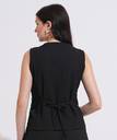 Introducing our sleek Black Solid Waistcoat and Ankle-Length Trouser Set, designed for a polished and modern look. The waistcoat features a back waist tie-up for a customizable, tailored fit. Paired with ankle-length trousers, this set offers both sophistication and comfort. The trousers come with convenient side pockets and semi-elasticated waist for added ease and flexibility. Ideal for formal and semi-formal occasions, this ensemble combines contemporary design with practical elements, making it a versatile addition to your wardrobe.