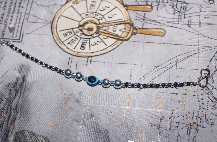 HAND BRACELET BLACK & SILVER CRYSTAL BLACK EVIL EYE