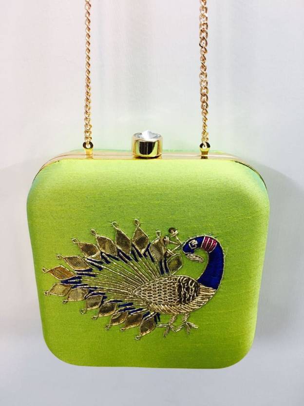 Fashinos Exquisite Finely Detailed Jardozi - Gotta Patti Hand Work Pista Green Designer Box Clutch is Perfectly suited for Party, Weddings, Kitty Parties, Evening Dinner, Birthday Parties or other Occassions. The colour combination makes it suitable and compliment girls and ladies wearing Sarees, Suits & any Ethnic Wear.