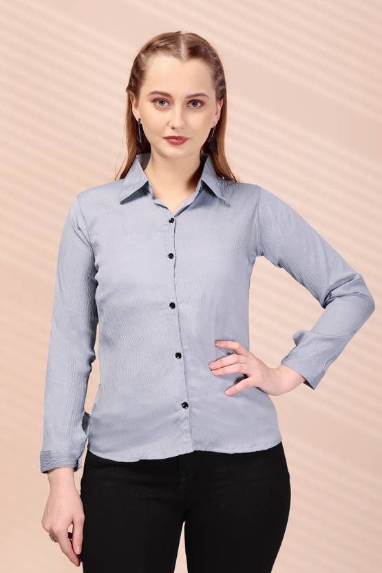 Women Regular Fit Solid Curved Collar Formal Shirt
