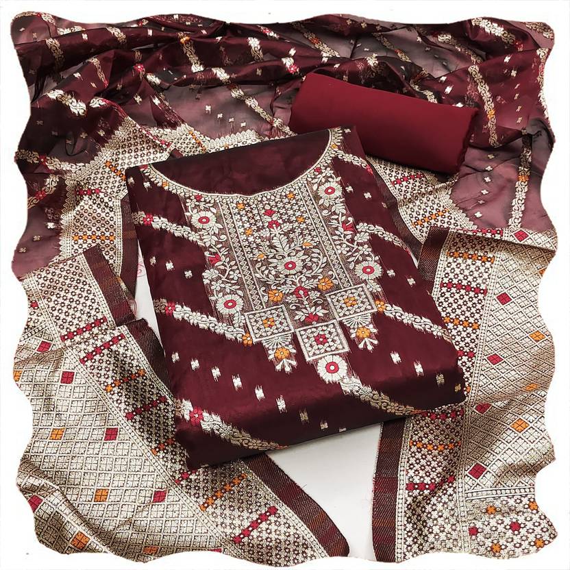 Unstitched Silk Blend Salwar Suit Material Self Design