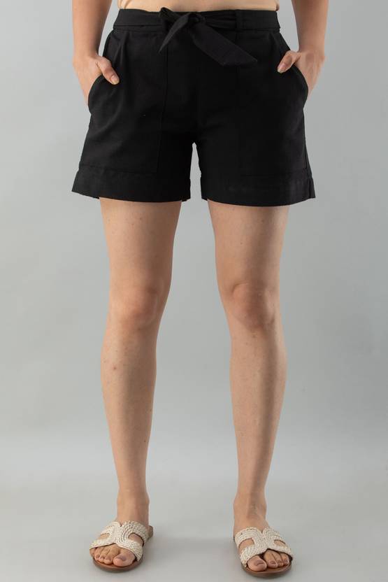 FASHION CLOUD Solid Women Black Regular Shorts