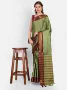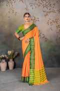 Fashion Club Collection Woven Maheshwari Cotton Silk Saree (Maroon, Orange)