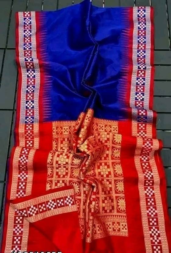 PremiumTextiles Temple Border Sambalpuri Pure Silk Saree (Blue)
