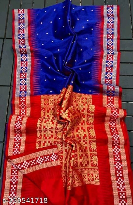 Temple Border Sambalpuri Nylon Saree (Blue)