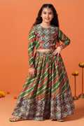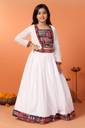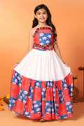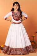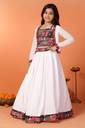 Shop from a wide range of beautifully crafted Lehenga Choli from Fashion Dream. Pair this piece with heels or flats and matching jewelry for a stunning look. Elevate your festive wardrobe with this stunning white lehenga choli, perfect for Navratri celebrations. This solid lehenga printed choli for girls is made of cotton blend with inner butter crepe for comfort. The girls choli has square neck, sleeveless and waist coat which makes it look different. This kid's Lehenga features are partially elasticated waist with a flared hem. This kids' ethnic wear is perfect for a wedding, garba party, sangeet, cocktail party, or other special events. Pair this outfit with juttis that have decorations and hefty earrings.