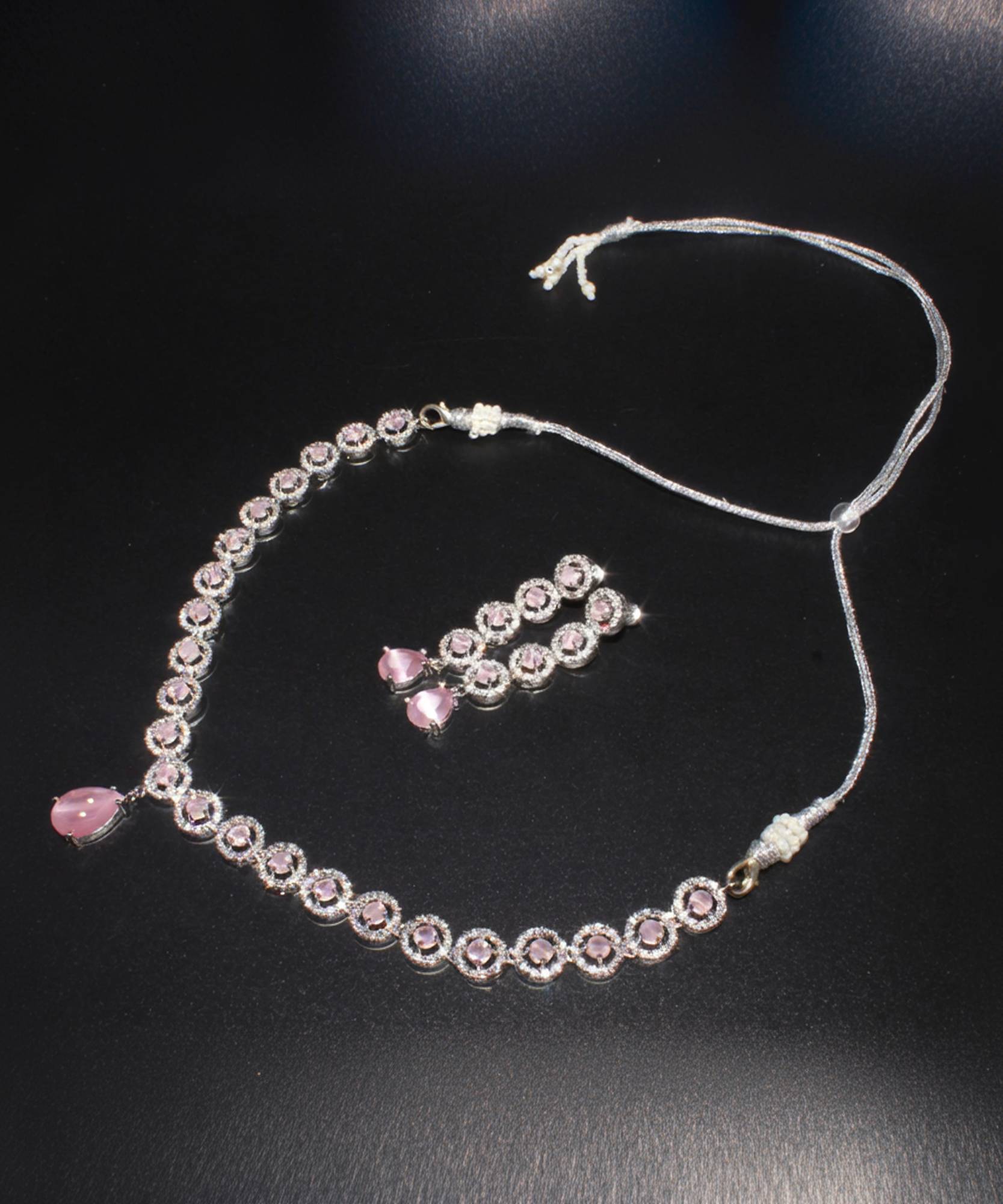 Pink Color American Diamond Jewellery Set for Wedding , Party and Engagement for Girls and Women