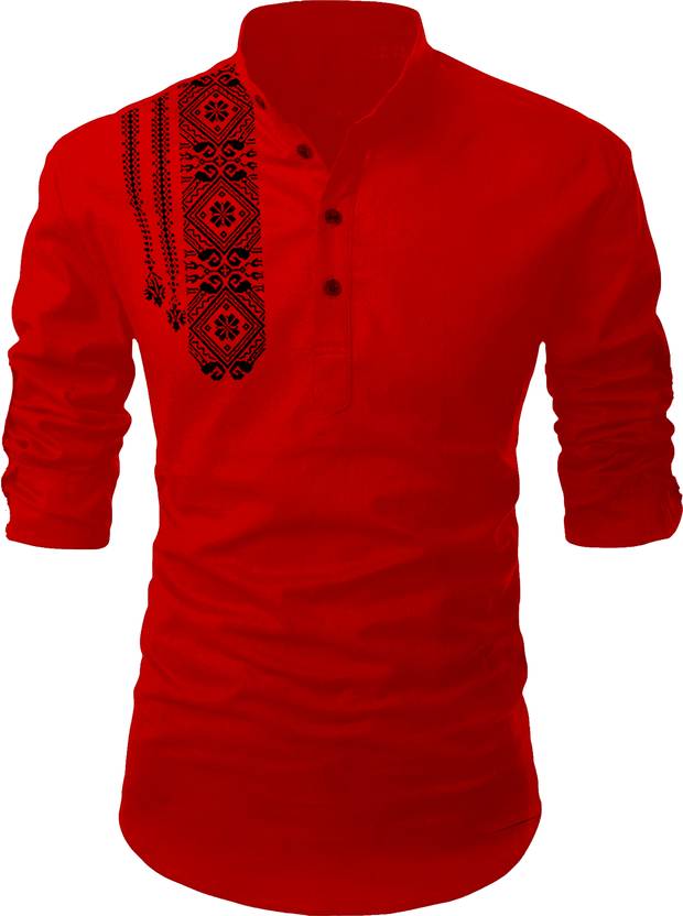 Fashion Martsย Men Printed Cotton Blend Straight Kurtaย ย (Red)