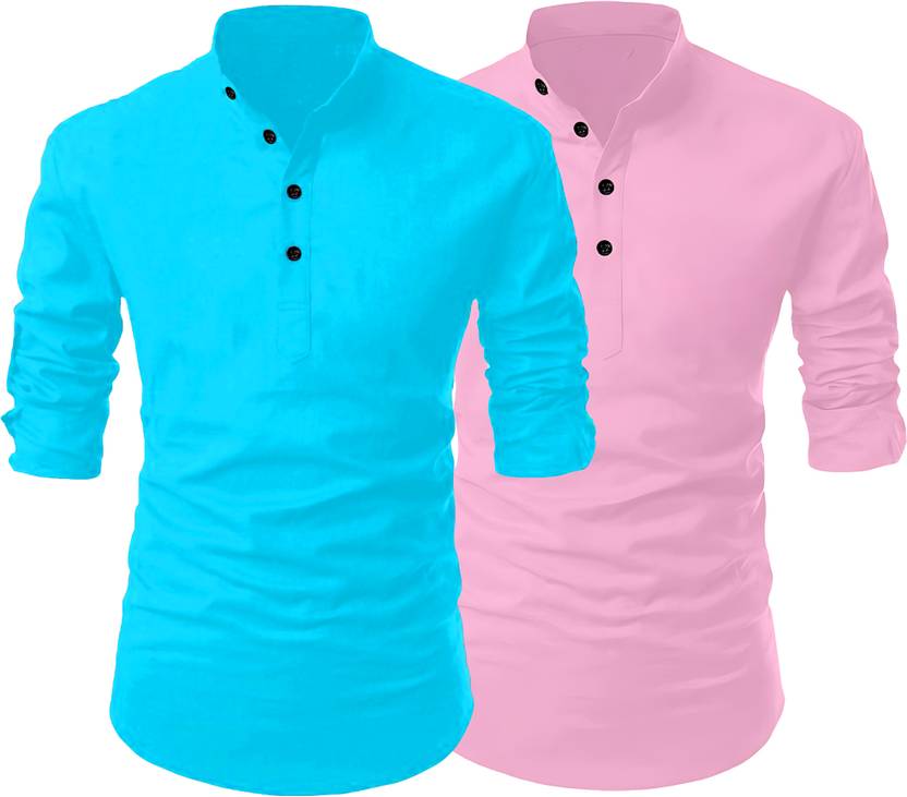 Fashion Marts Pack of 2 Men Solid Cotton Blend Straight Kurta (Multicolor)