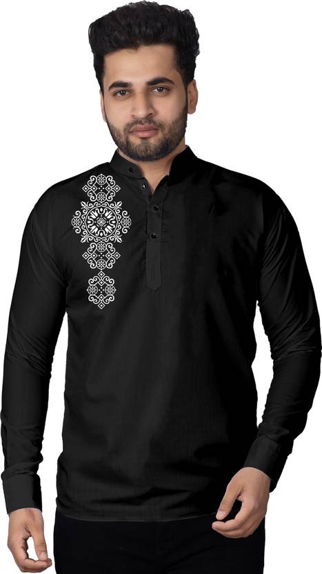 Fashion Marts Men Solid Straight Kurta (Black)