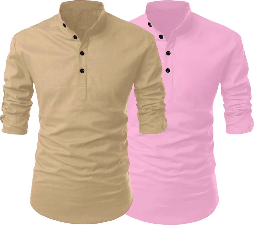 Fashion Marts Pack of 2 Men Solid Cotton Blend Straight Kurta  (Multicolor)