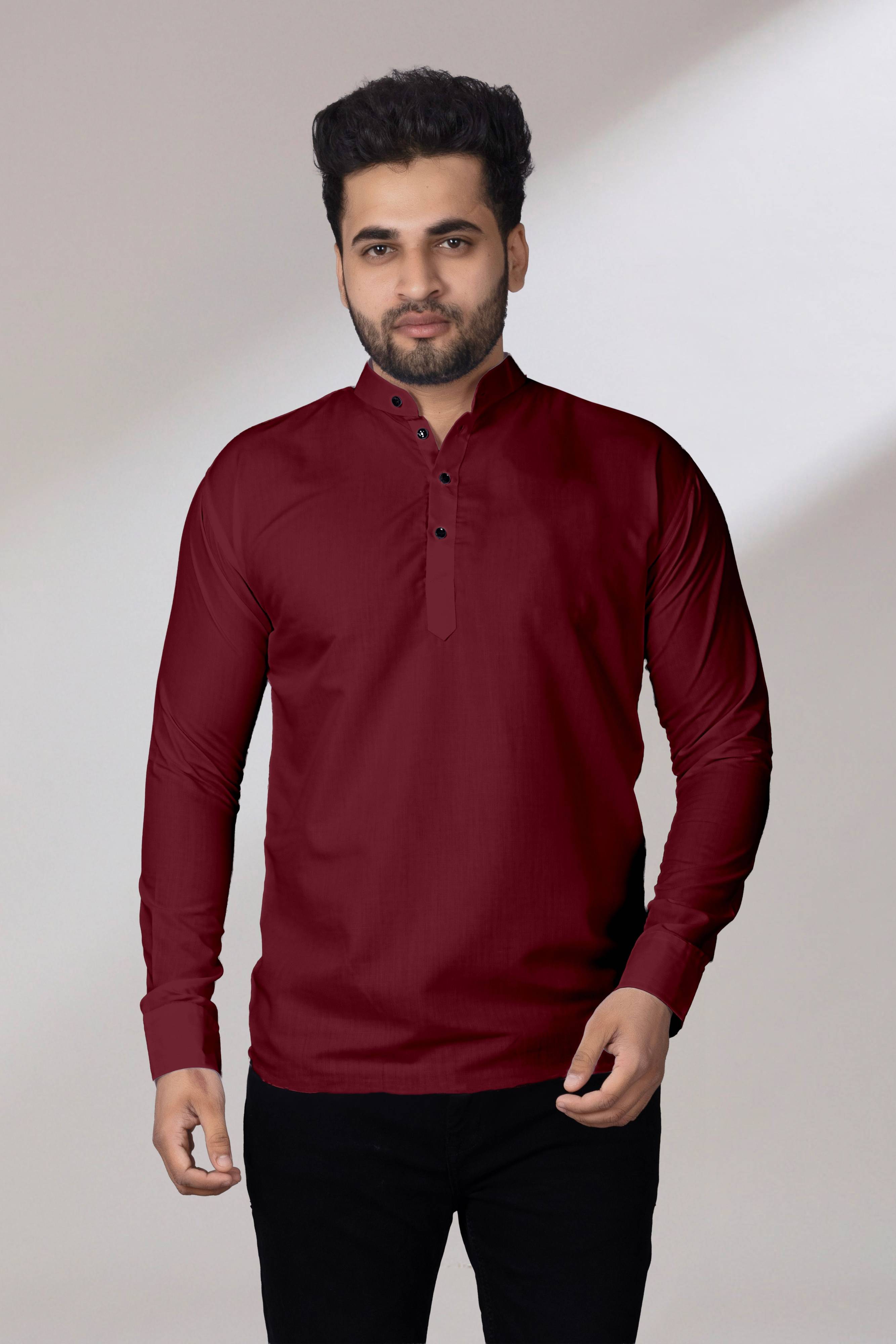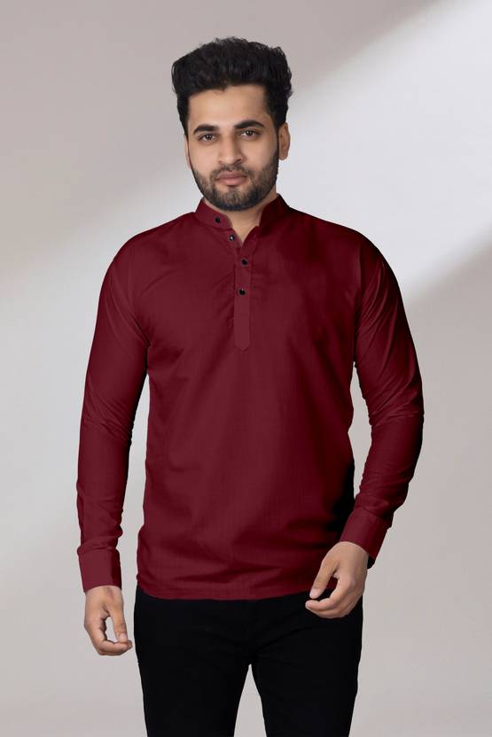 Fashion Marts Men Solid Straight Kurta (Maroon)