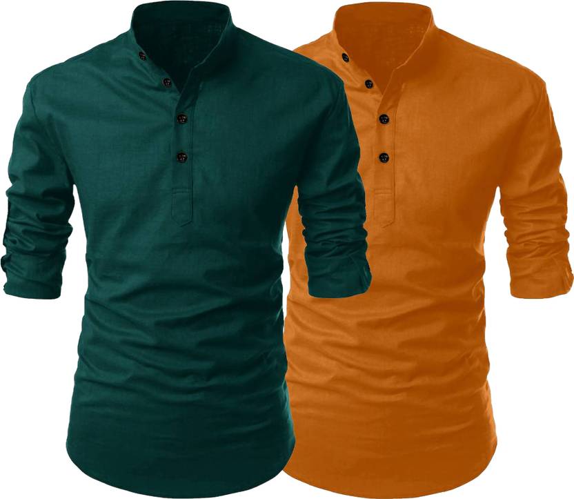 Pack of 2 Men Solid Cotton Blend Straight Kurta (Multicolor)