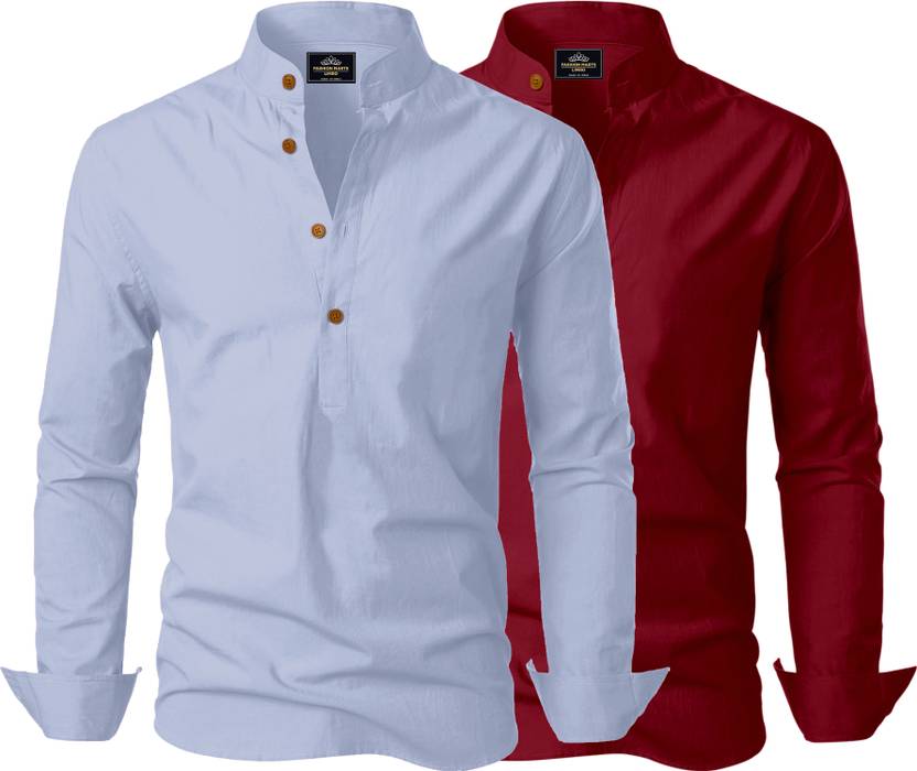 Fashion Marts Men Solid Cotton Blend Straight Kurta (Multicolor)