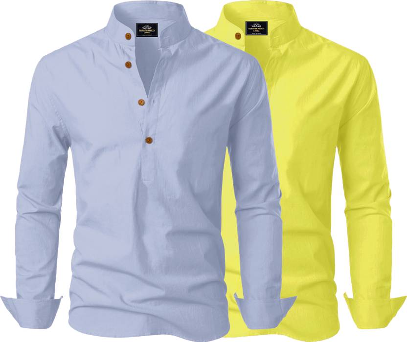 Fashion Marts Men Solid Cotton Blend Straight Kurta (Multicolor)