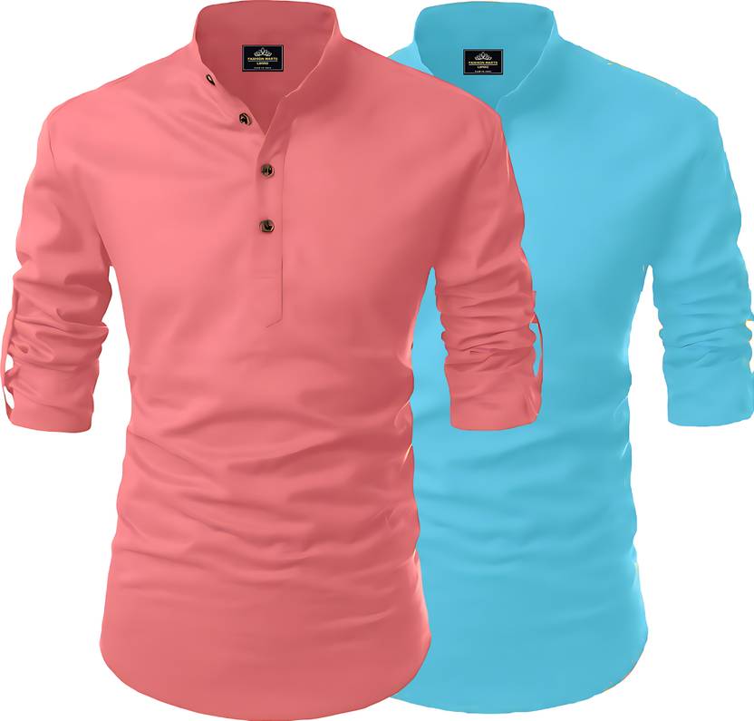 Men Solid Cotton Blend Straight Kurta (Multicolor, Blue)