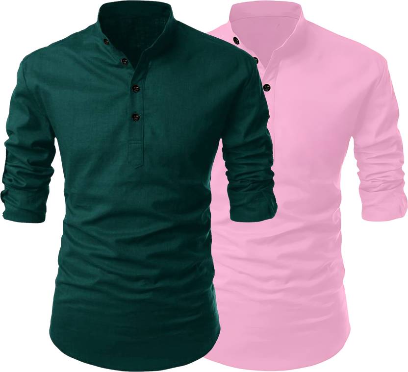 Fashion Marts Pack of 2 Men Solid Cotton Blend Straight Kurta  (Multicolor)