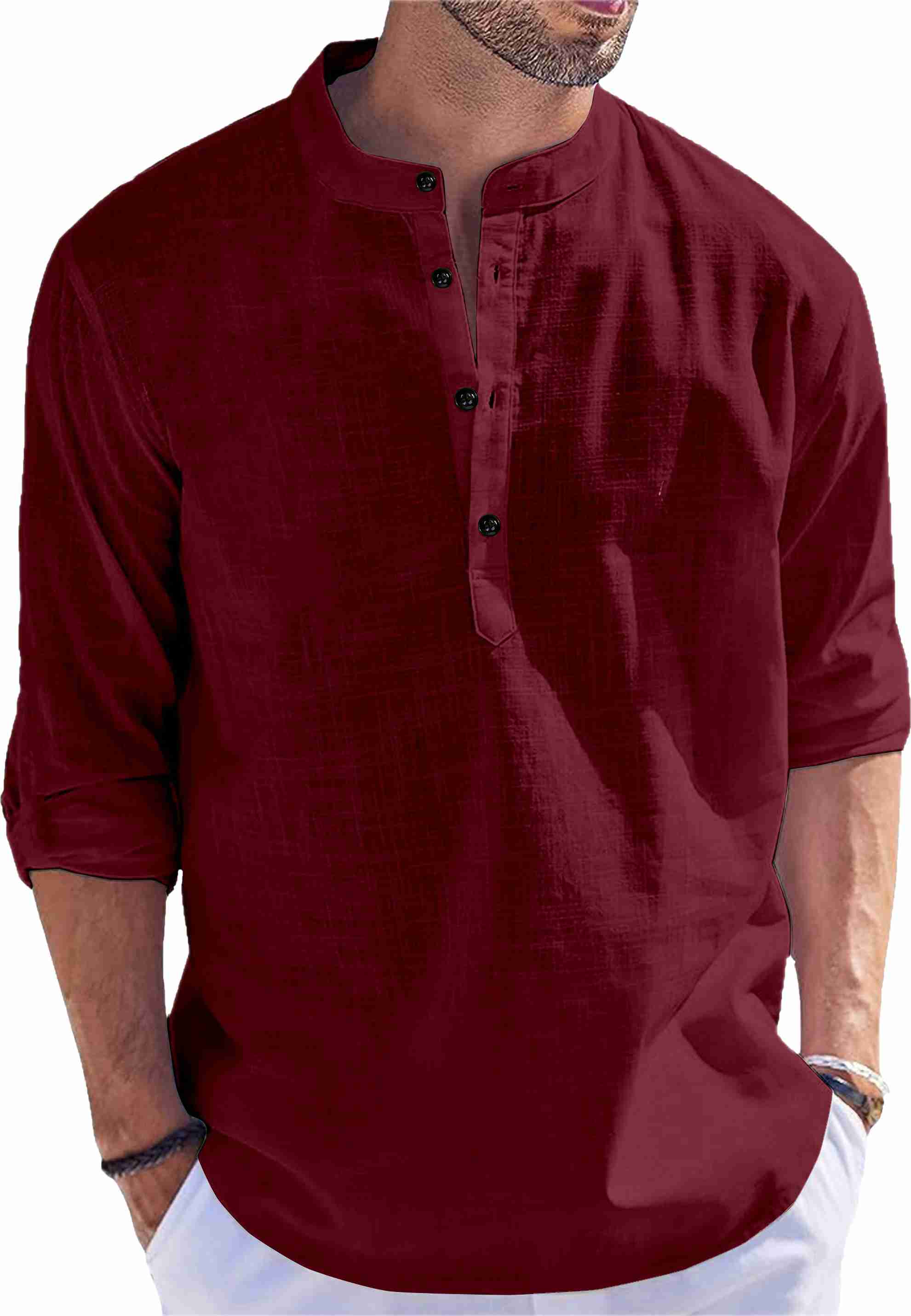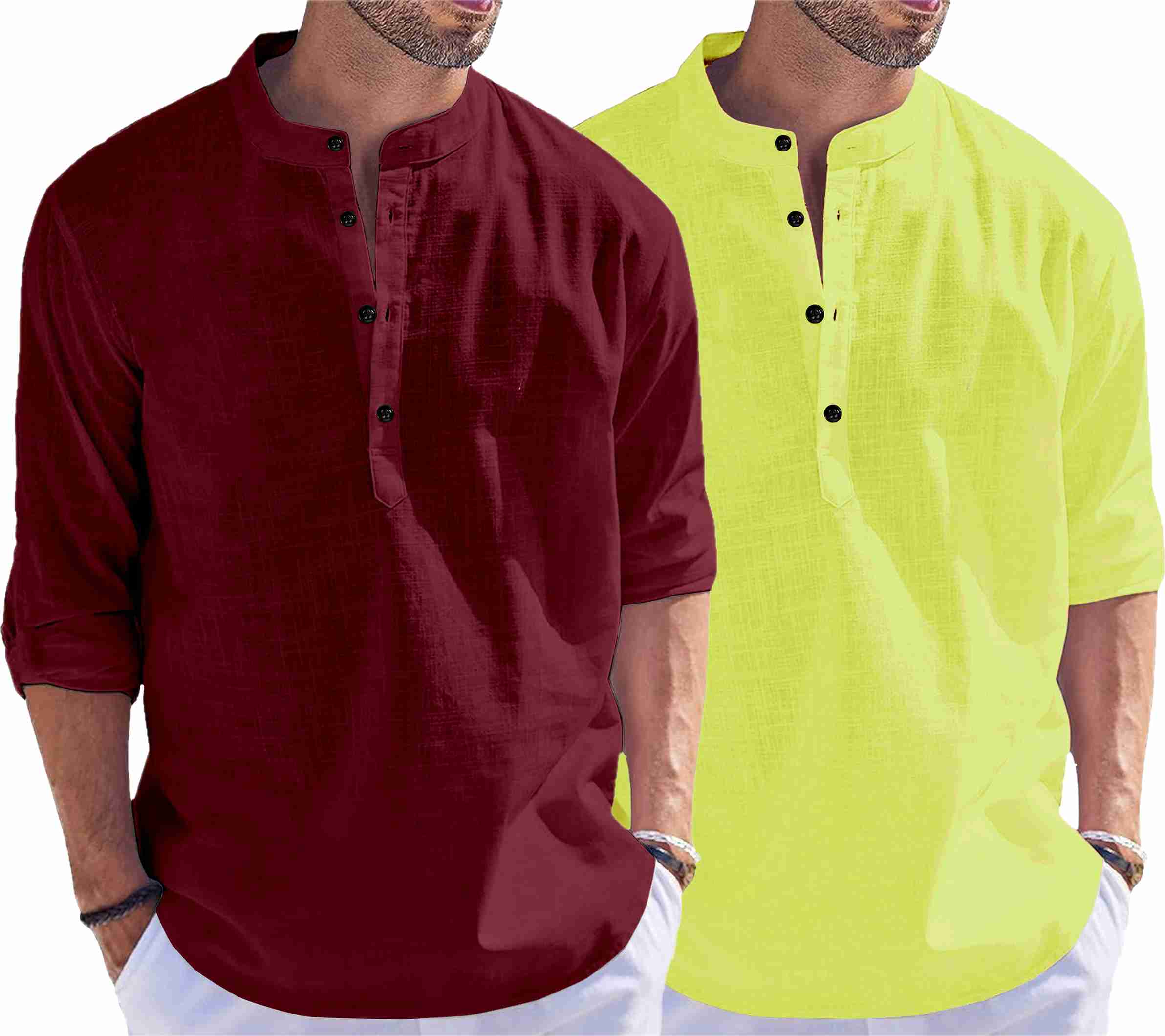 Pack of 2 Men Solid Cotton Blend Straight Kurta (Maroon, Light Green)