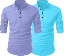 Fashion Marts Men Solid Straight Kurta (Blue, Purple)