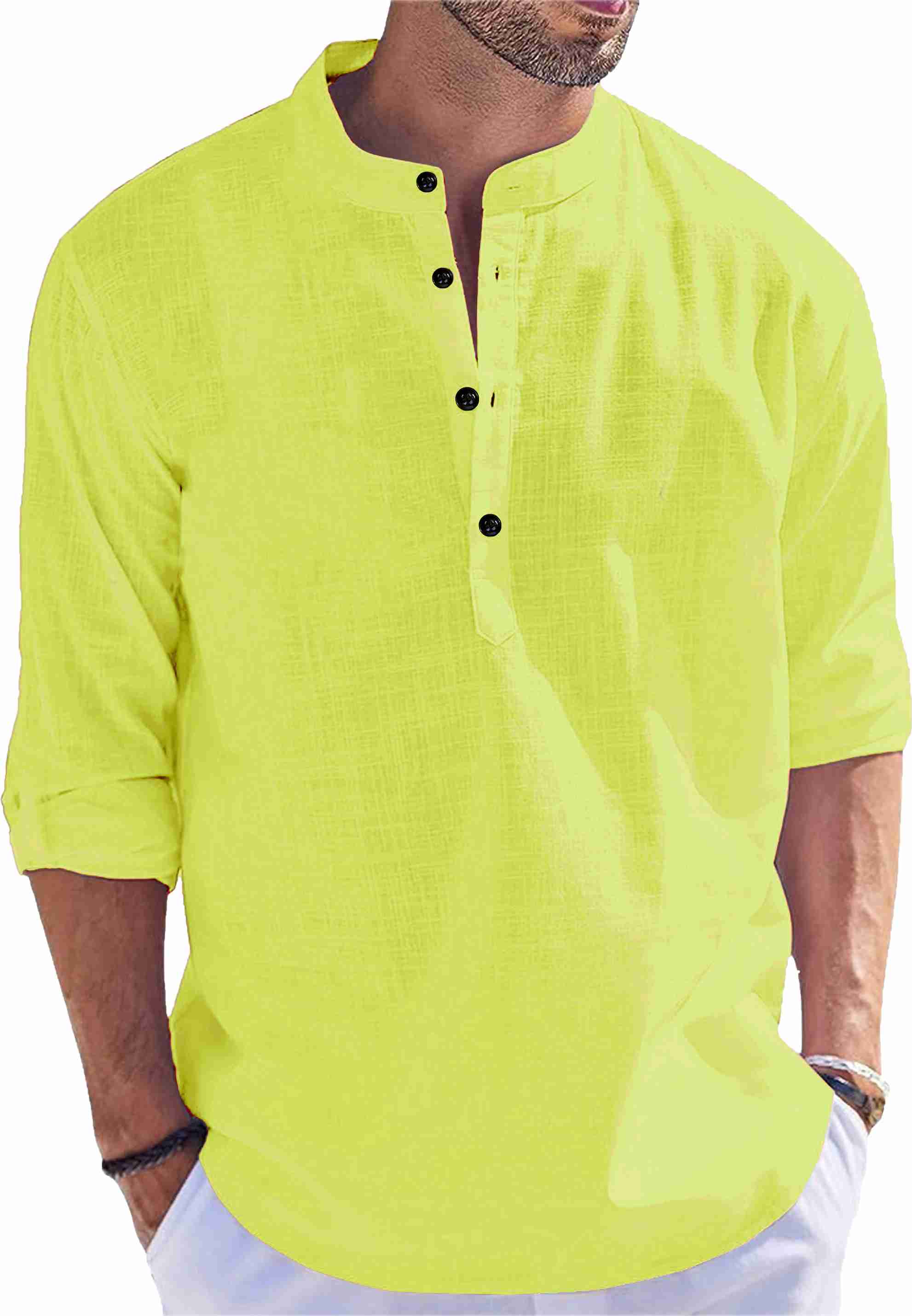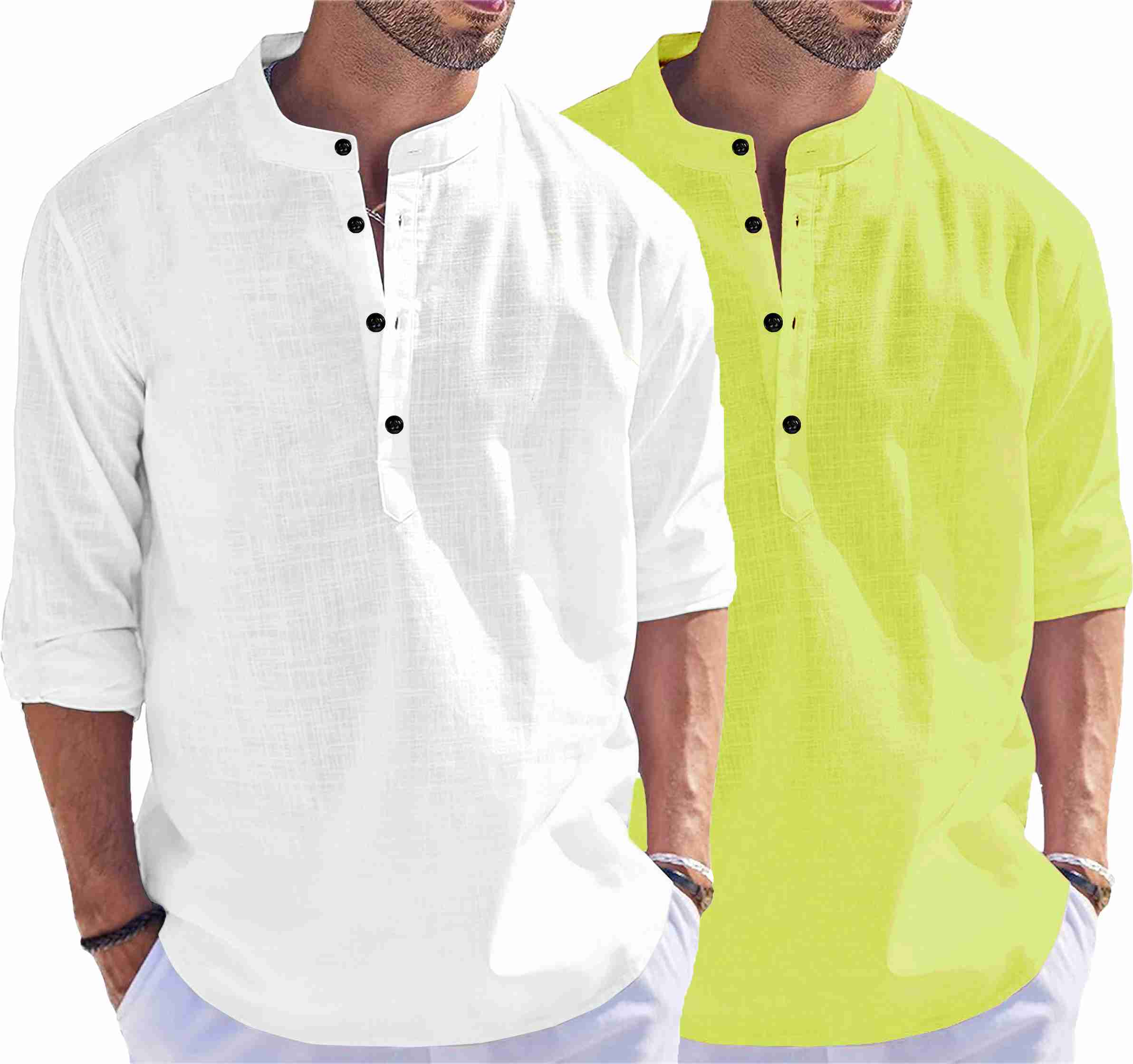 Men Solid Cotton Blend Straight Kurta (White, Light Green)