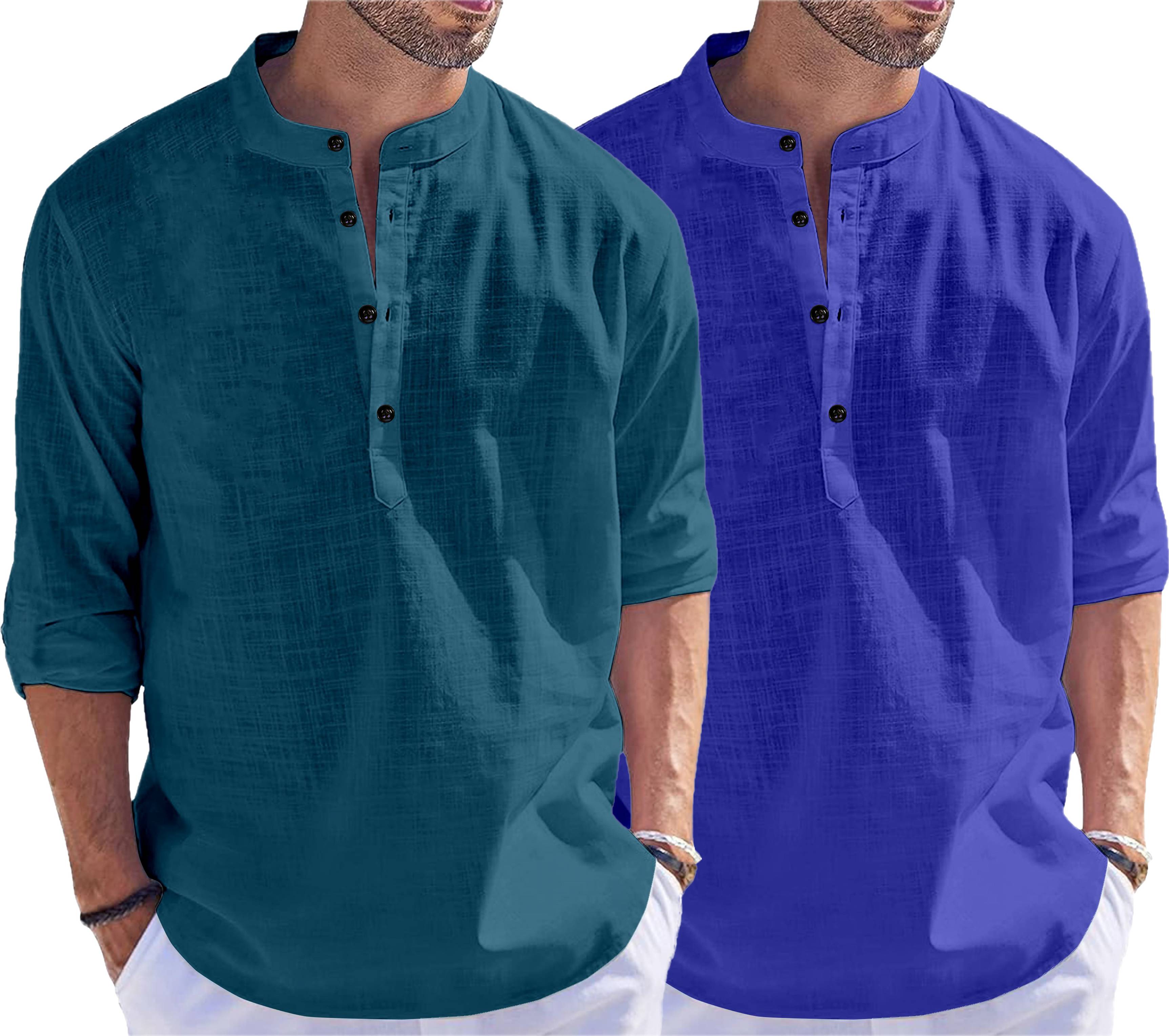 Comfortable Full Sleeves: Full-length regular sleeves and a mandrain neckline