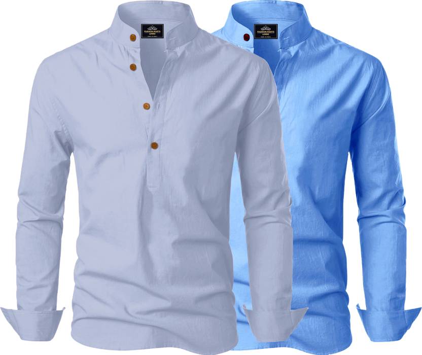 Fashion Marts Men Solid Cotton Blend Straight Kurta (Multicolor)