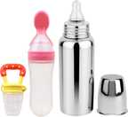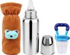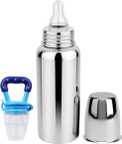FASHION MINIS Baby Feeding Steel bottle with fruit feeder 0 to 2 years BPA free - 250 ml (BOTTLE+BLUEFEEDER)