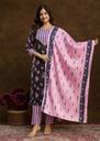 Get ready to turn heads with this gorgeous Anarkali suit women absolutely adore! Crafted for comfort and designed for compliments, this kurti set with dupatta is the perfect addition to your ethnic wardrobe. Made with breathable fabric, this cotton kurta set with dupatta feels soft on the skin and keeps you cool throughout the day, whether you're attending a function or just dressing up for the love of style.