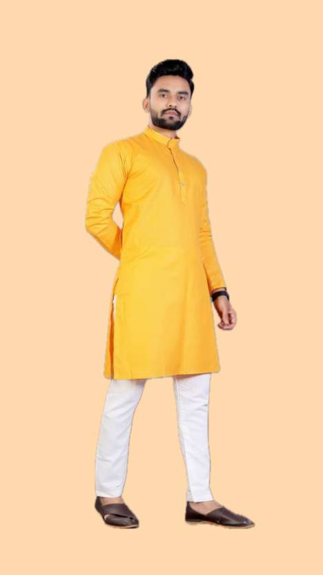 The Fashion Outlets Men Solid A-line Kurta (Yellow)